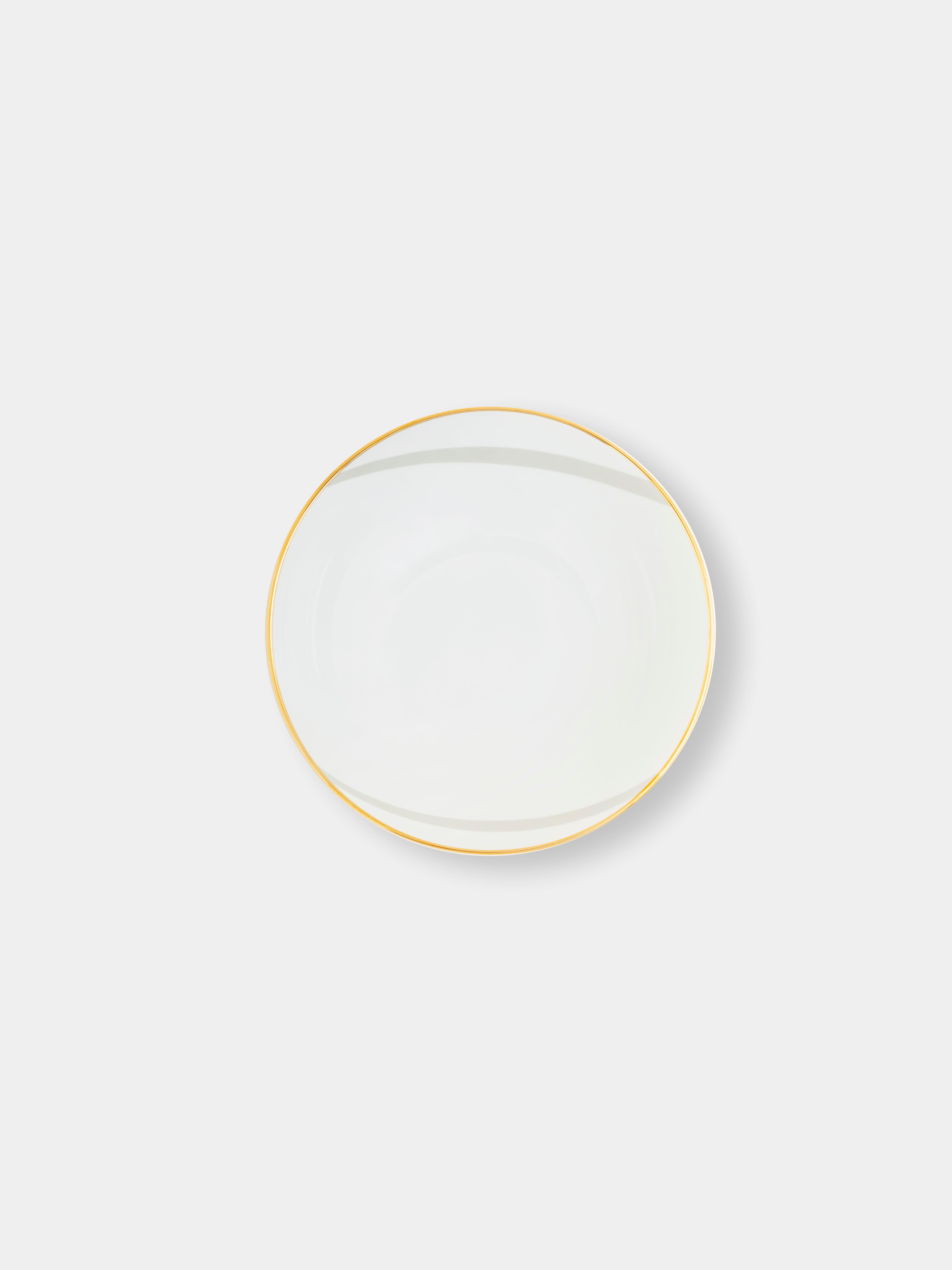 Hand-wash gently with mild soap and a soft cloth. Avoid abrasive cleaners to preserve its delicate finish. Dishwasher and microwave use are not recommended due to the gold rim.