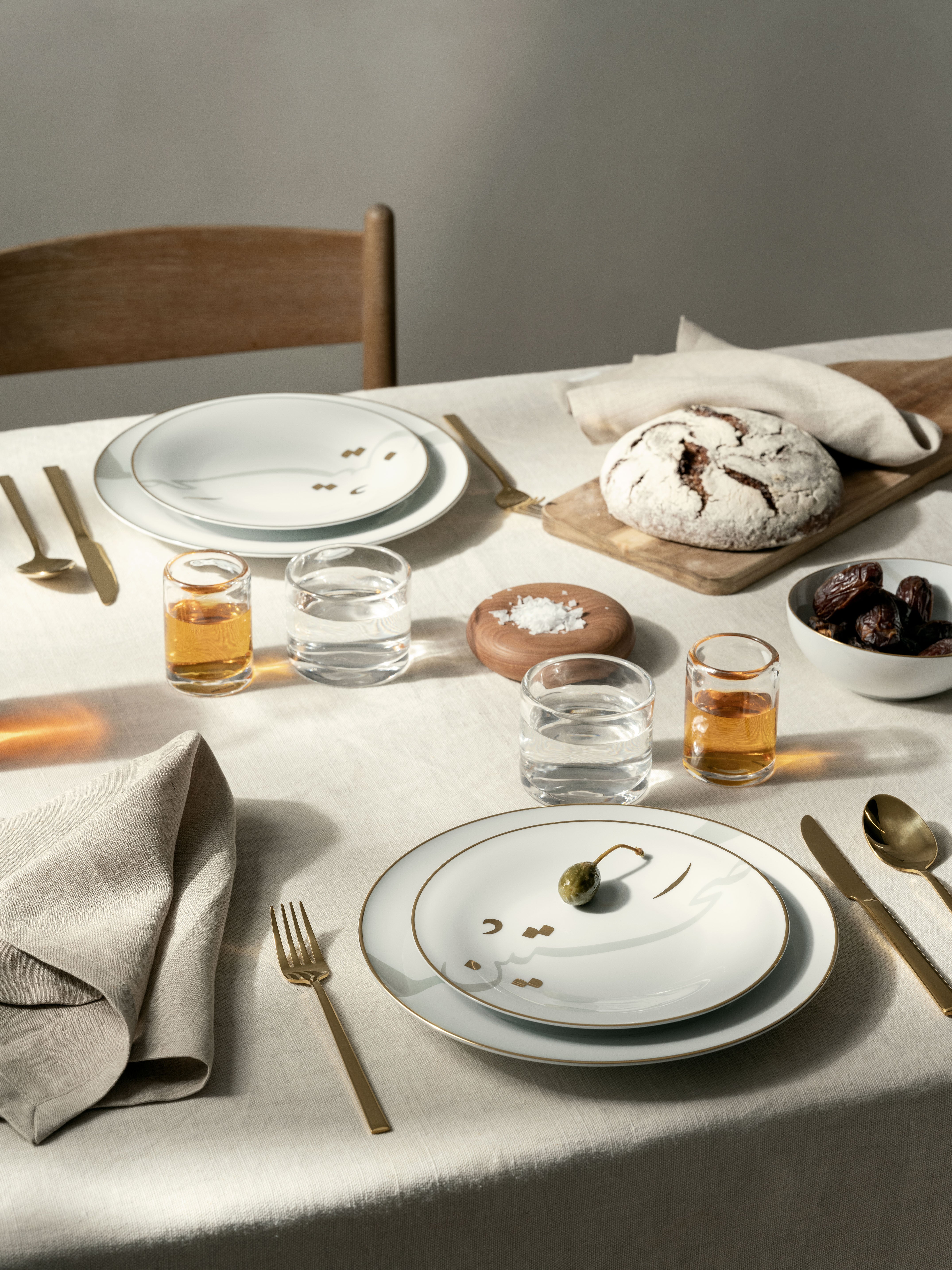 Shadows, script, and soft silhouettes compose a dining experience shaped by tradition.